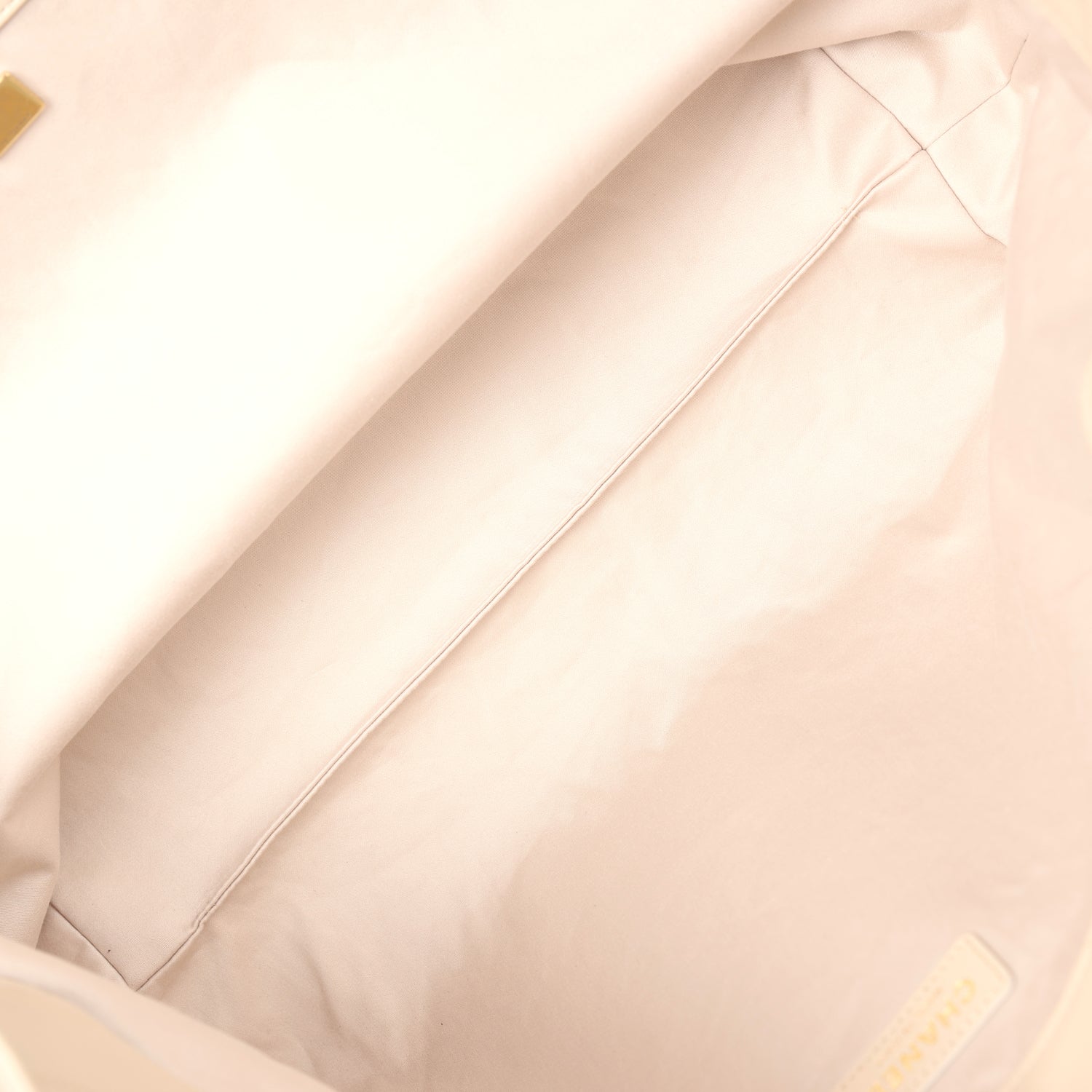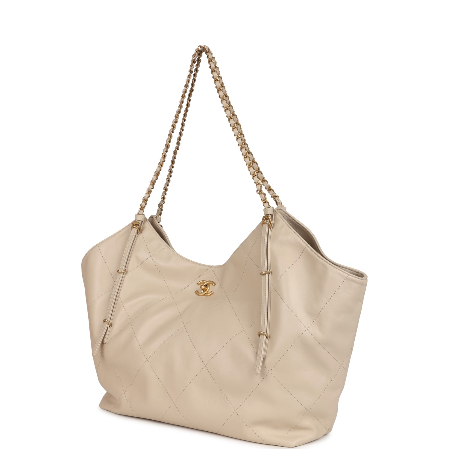 Chanel Maxi Coco Shopping Bag Beige Calfskin Antique Gold Hardware
