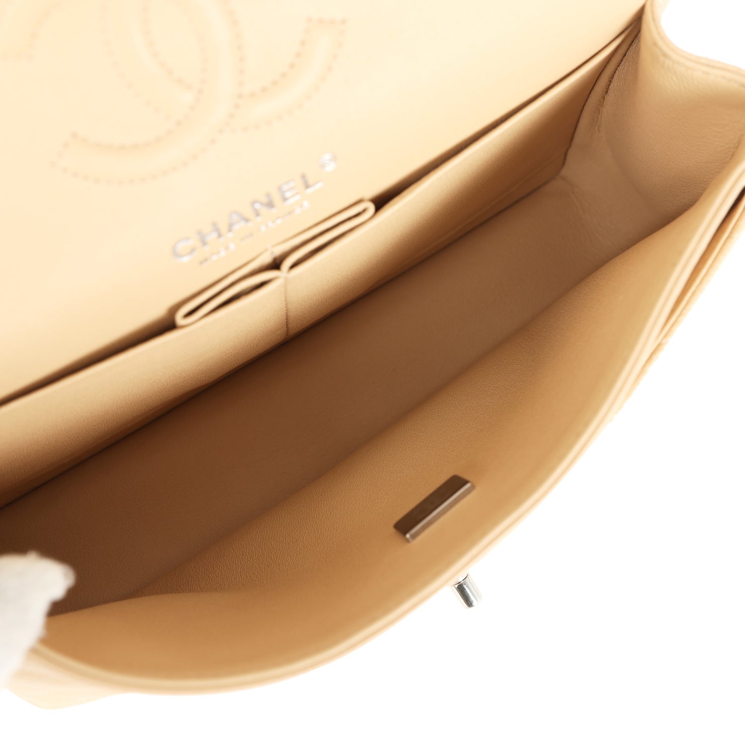 Chanel Small Classic Double Flap Bag Beige Caviar Silver Hardware